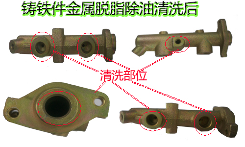 汽車制動總泵是汽車零配件中重要的組成部分,其材質(zhì)一般都是鑄鐵件表面鍍鋅,鍍鋅之后一般會用柴油進行珩磨,這樣就導致工件表面和孔內(nèi)殘留有柴油,需要對其進行除油。同時,酸性和堿性的清洗劑可以除油干凈,不過會對鍍鋅層產(chǎn)生影響,使鍍鋅層褪色。